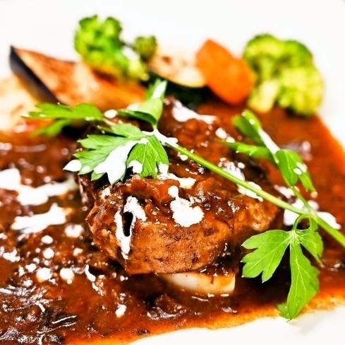 シェフが腕によりをかけて作り上げた自慢の料理をご提供♪三島産の野菜と牛すじを使い、12時間煮込んだ後、さらに36時間もかけて丁寧に仕上げた自家製フォンドヴォーが味の決め手です★